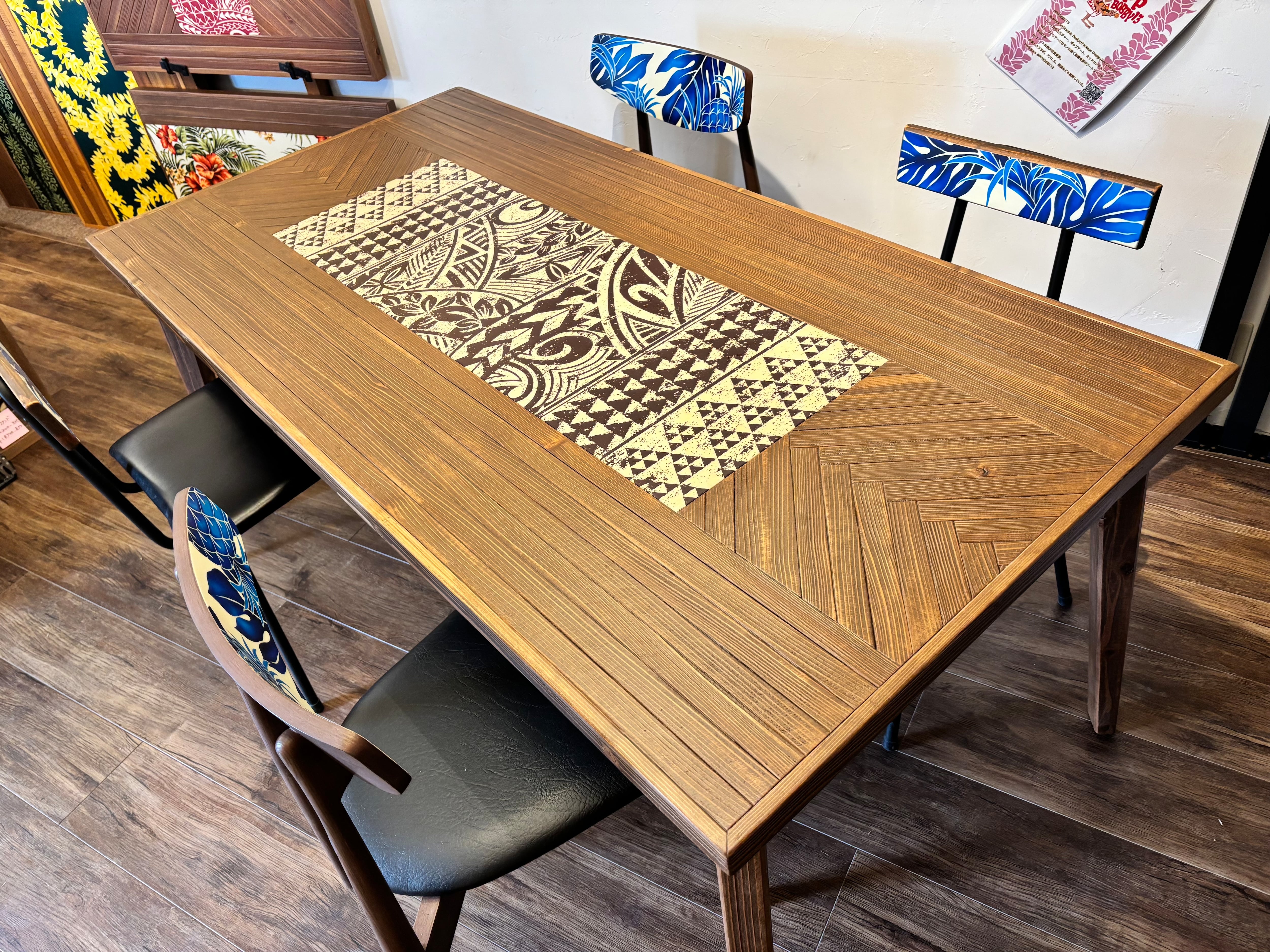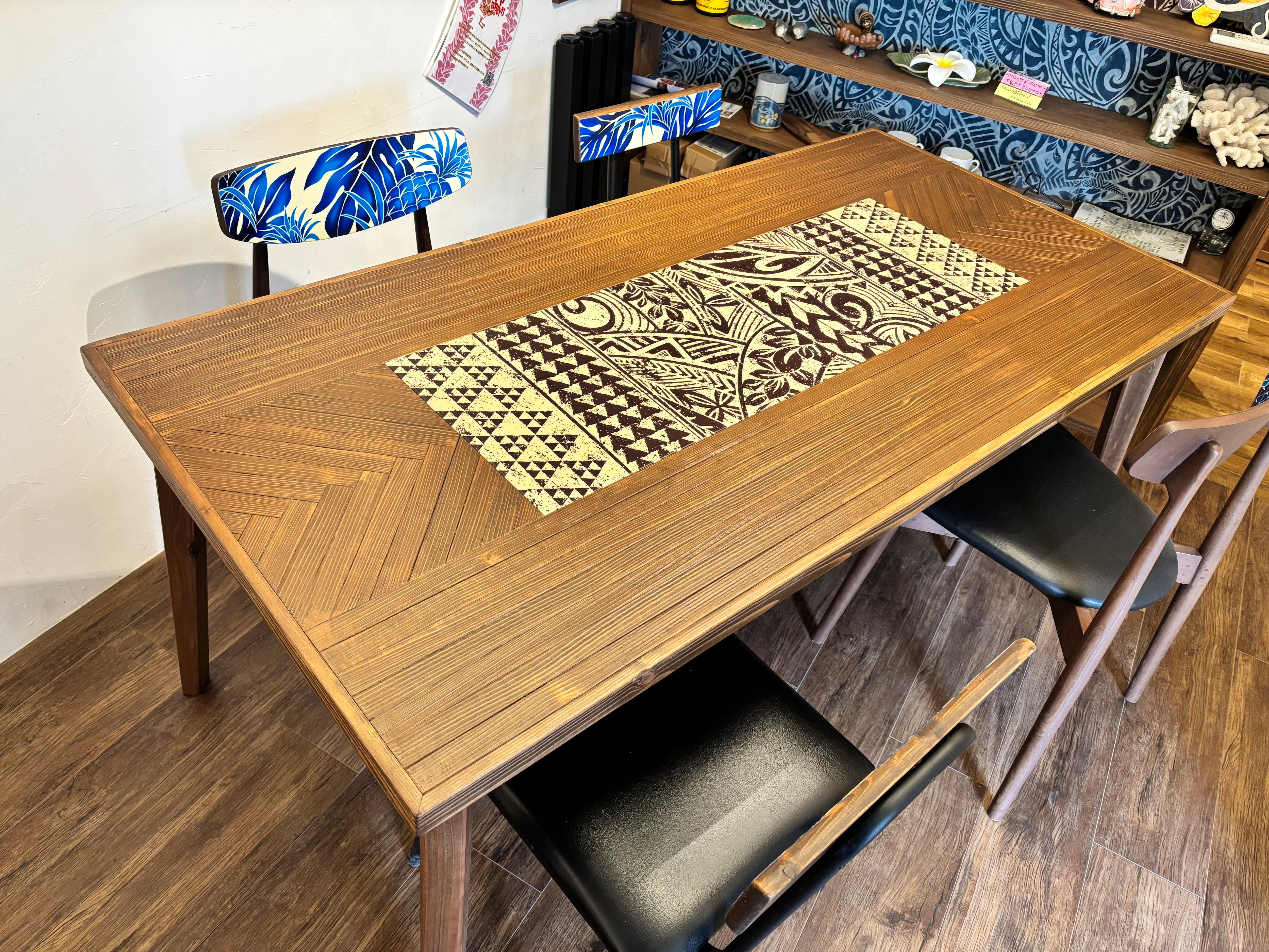ブラウンでまとめたダイニングテーブルの仕上がりは大人ハワイアン♪