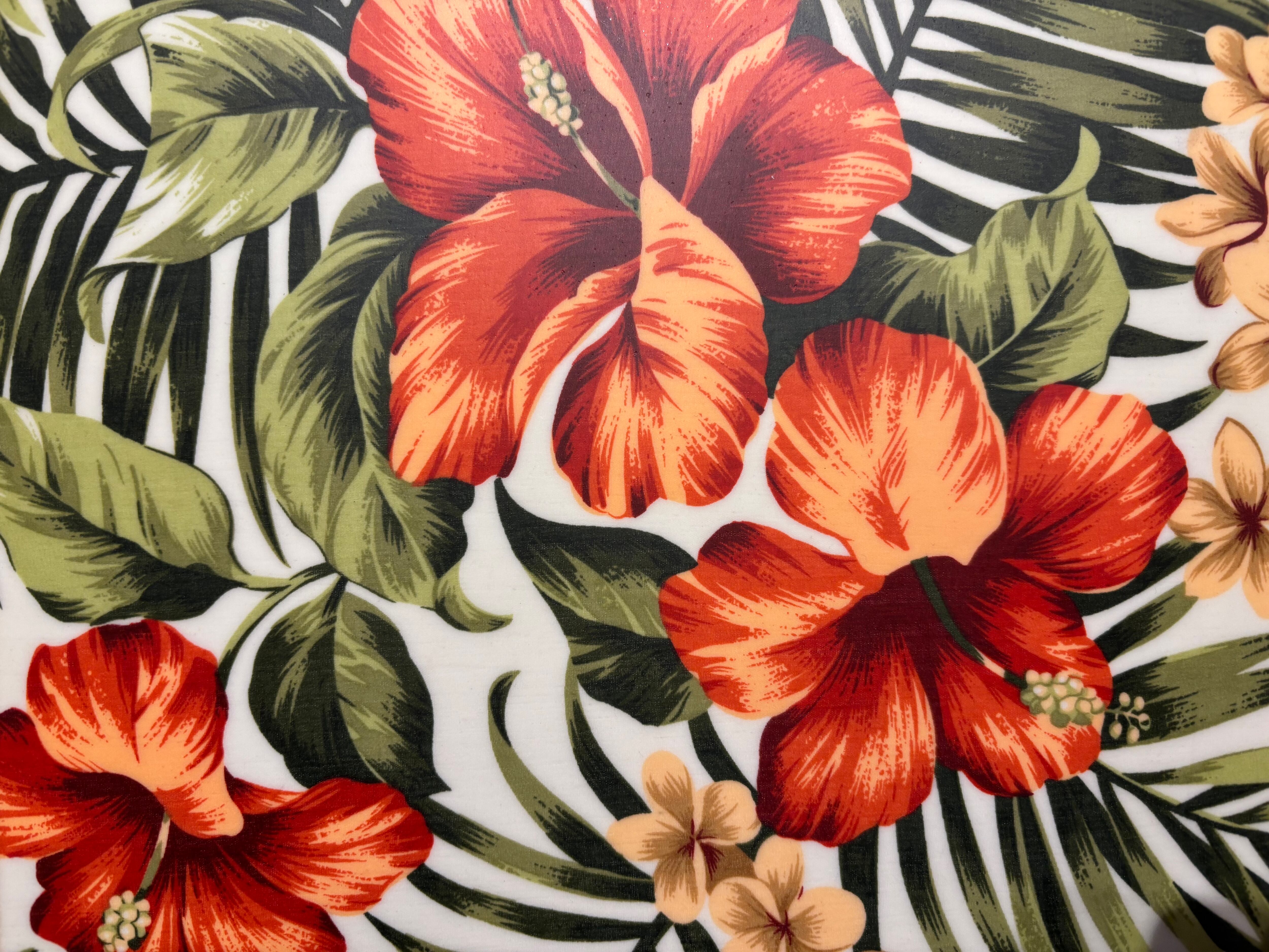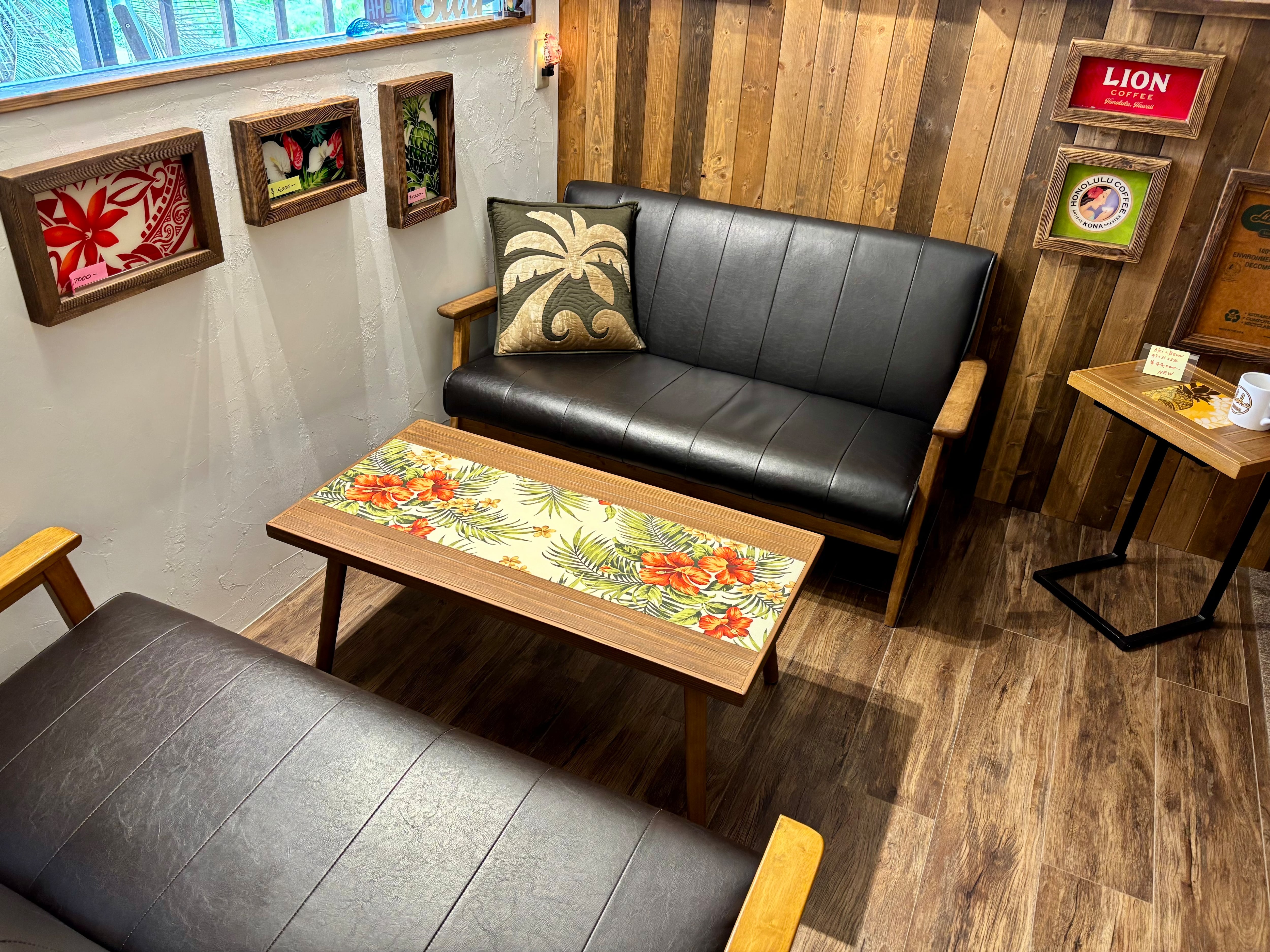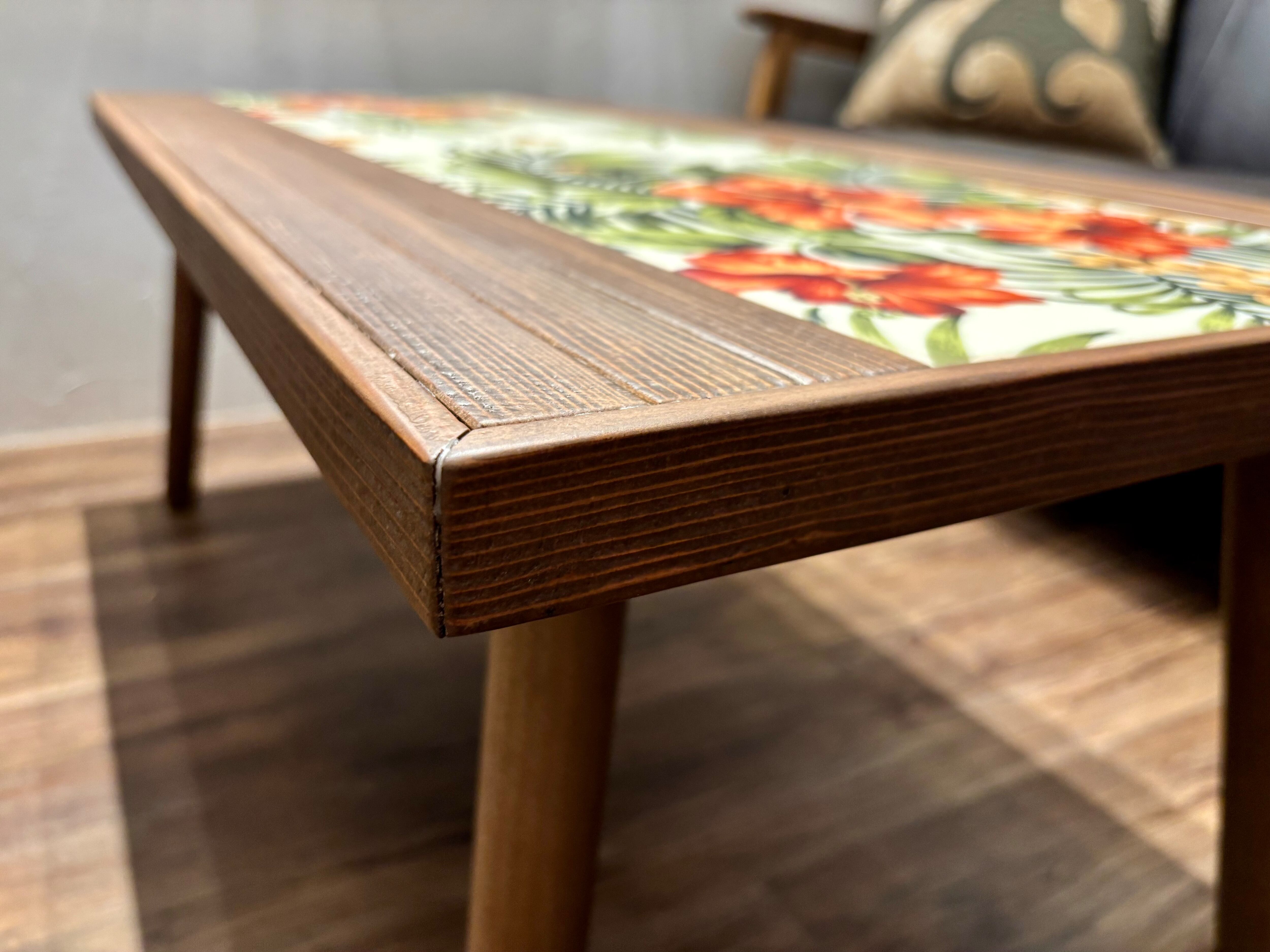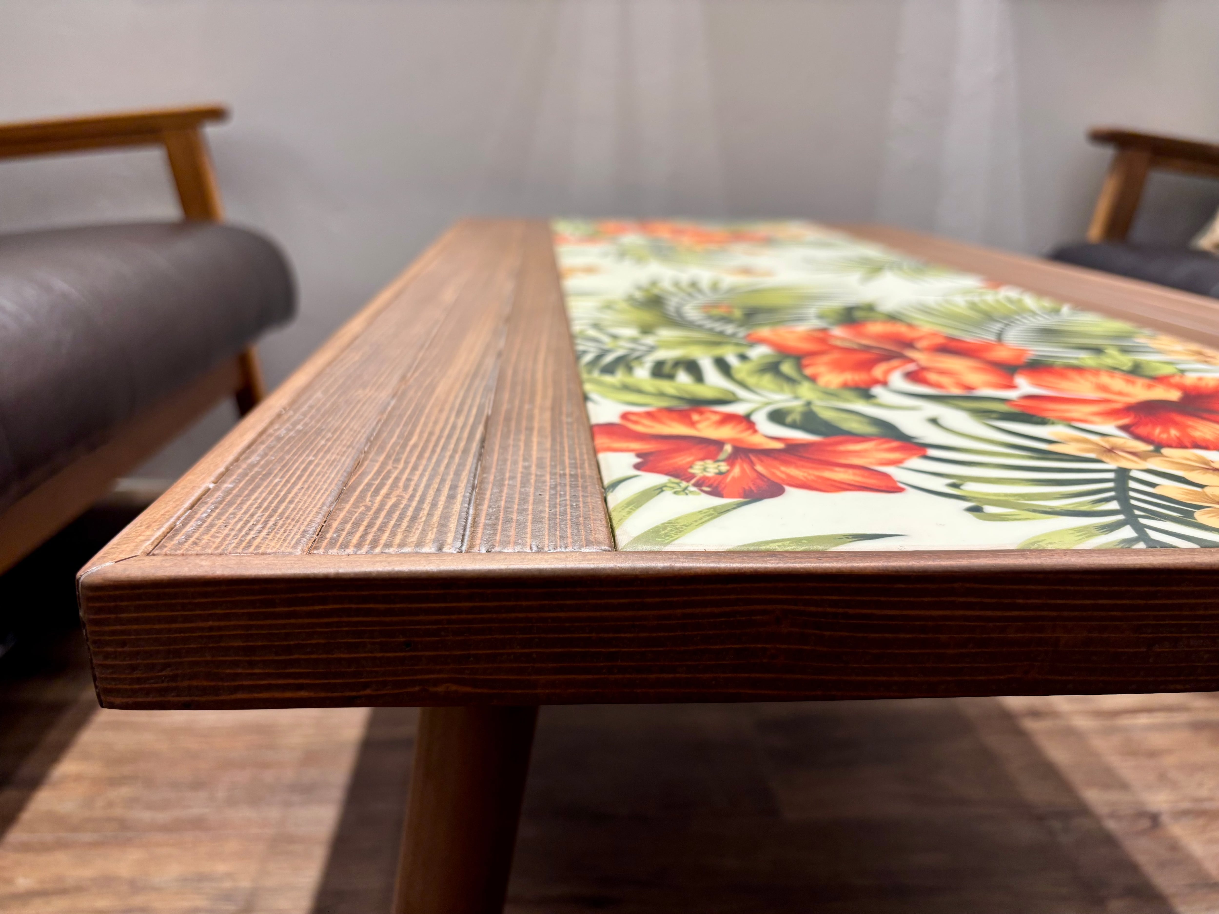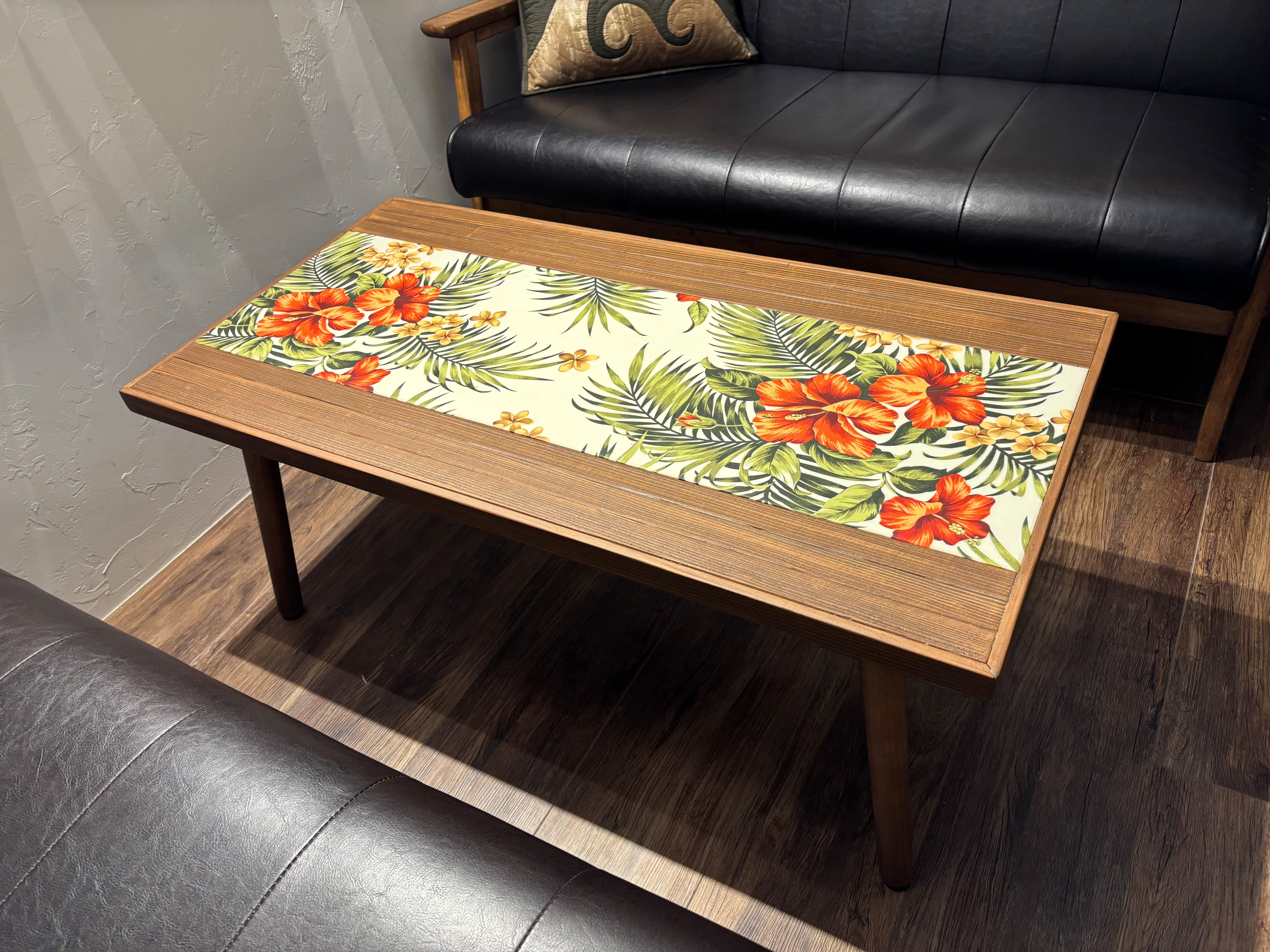ビンテージ風のハイビスカス柄で製作したセンターテーブル
