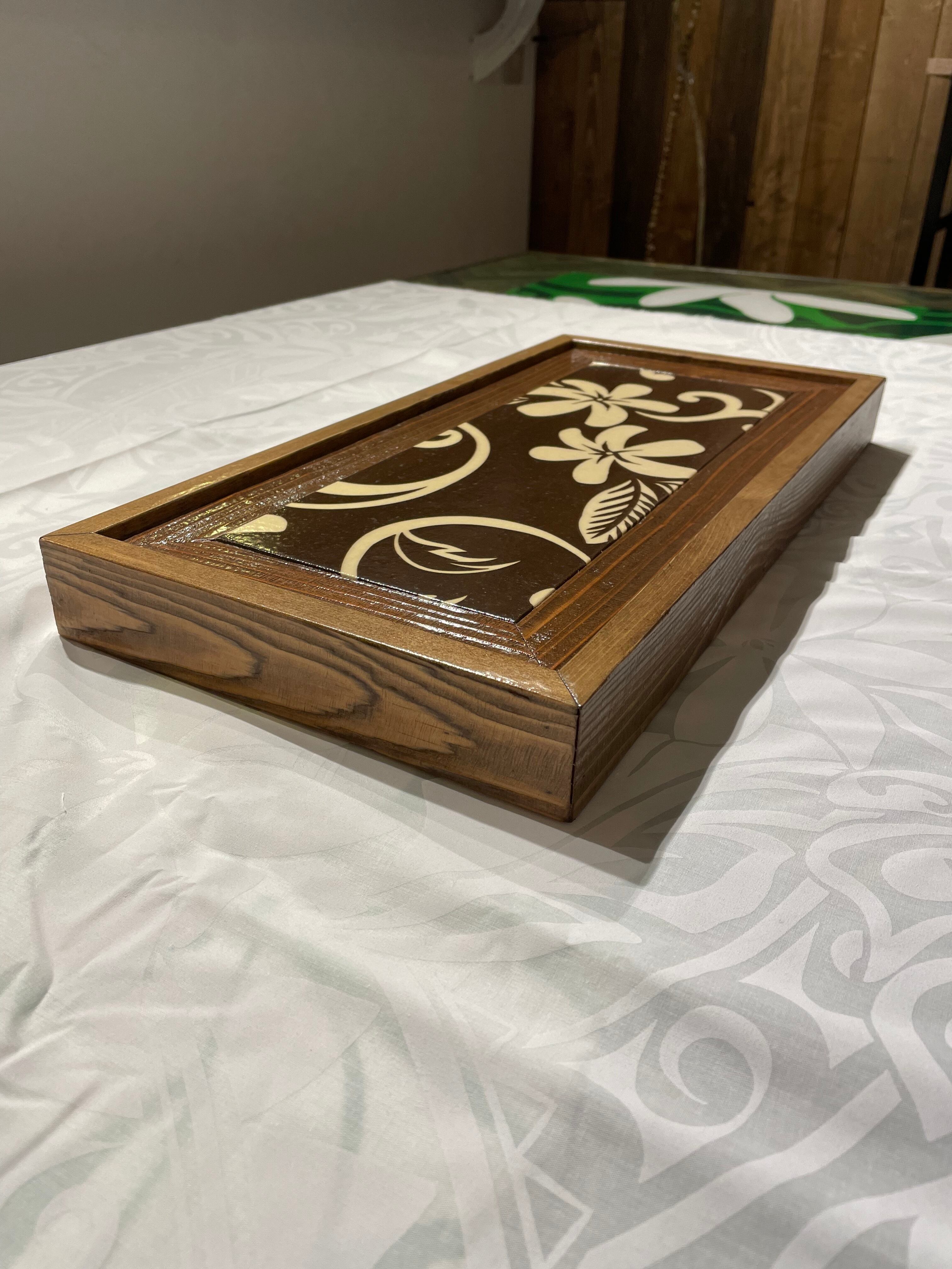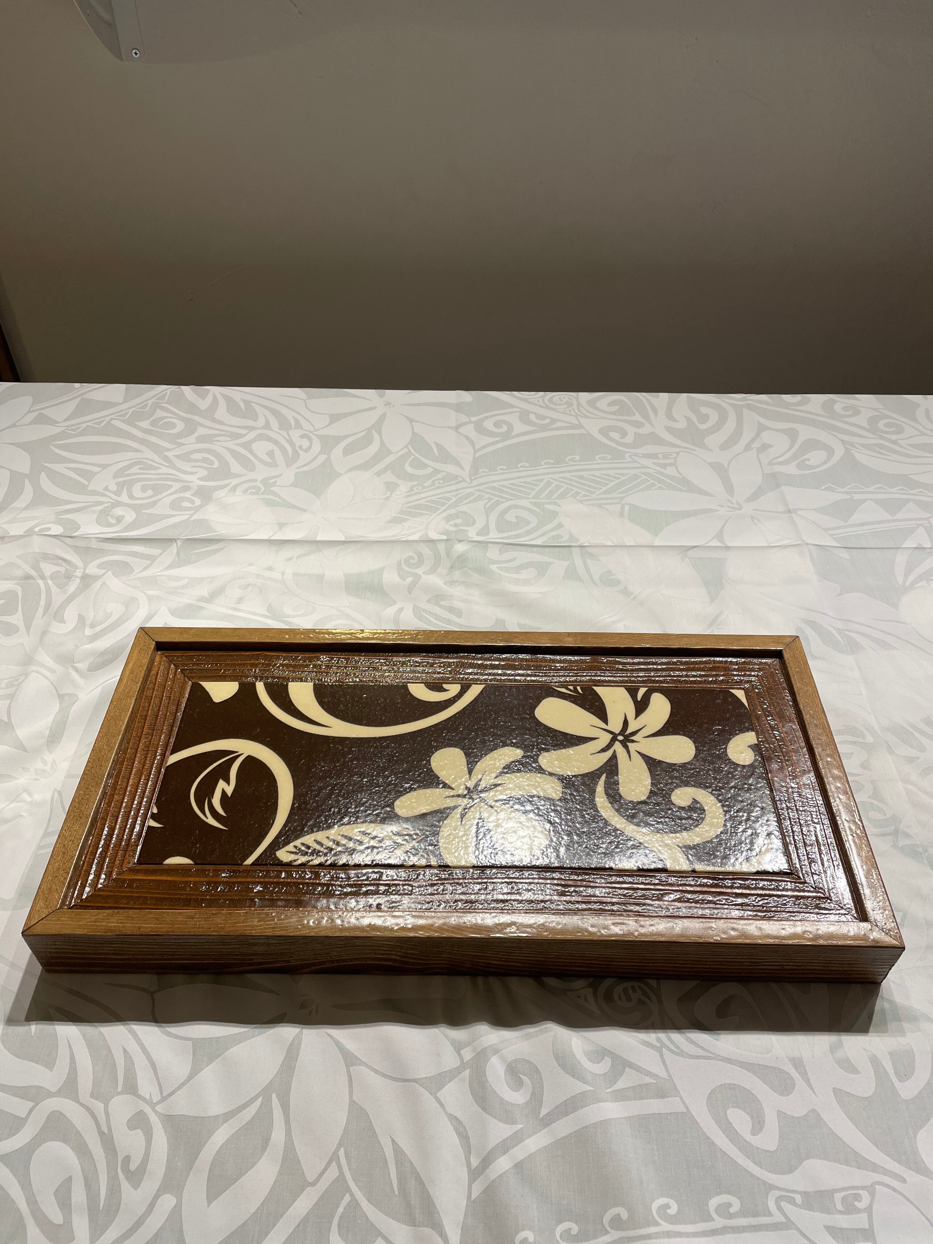 ハワイアンファブリックとエイジングウッドを合わせたデザインのペットフードスタンドです^_^