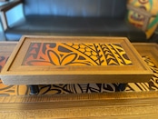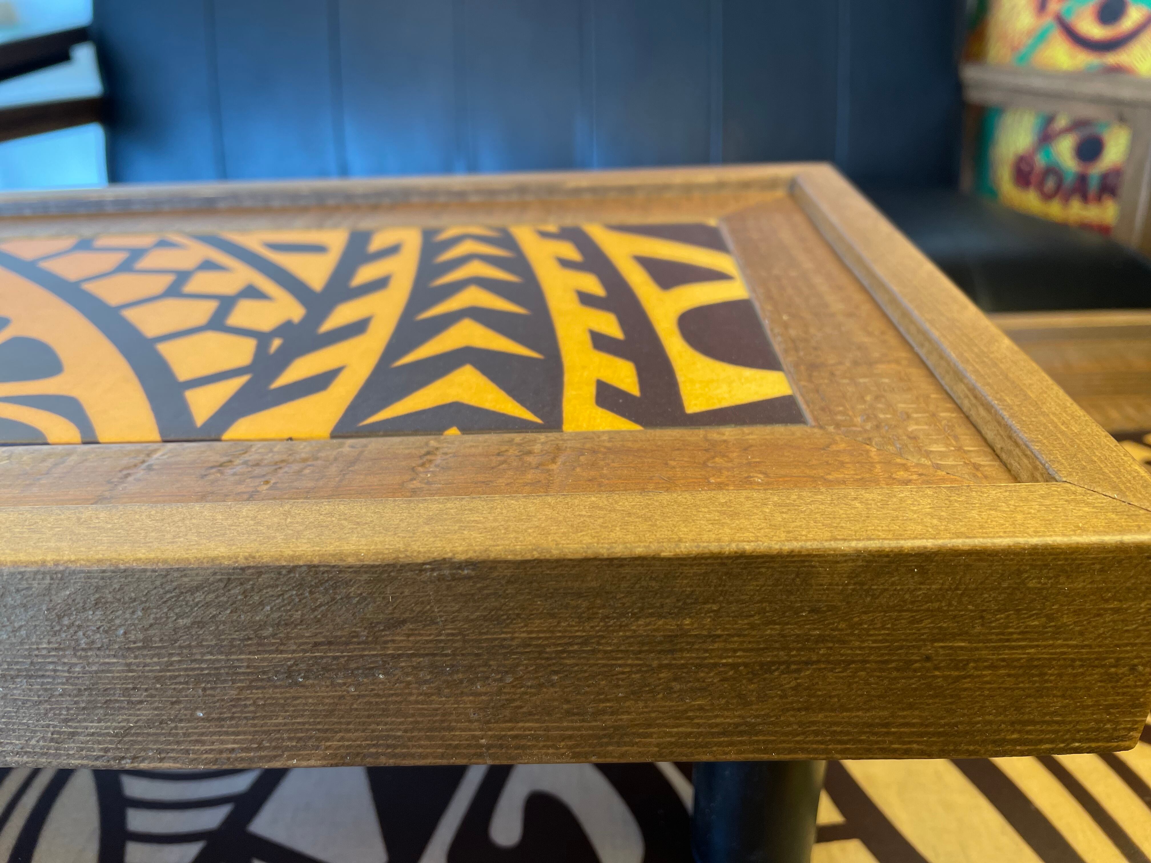 ハワイアンファブリックとエイジングウッドを合わせたデザインのペットフードスタンドです^_^
